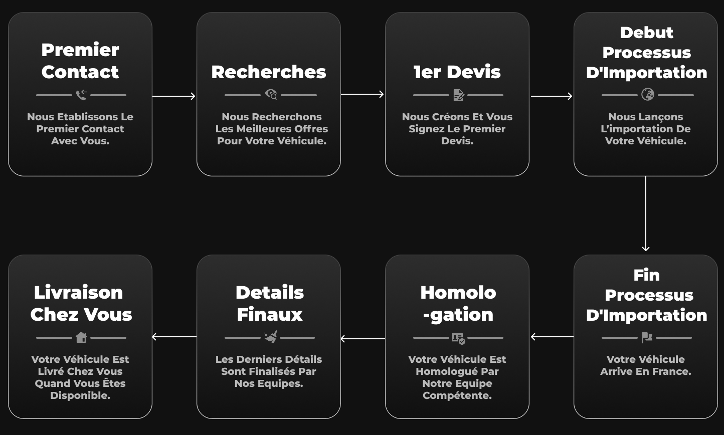 Nous importons nos véhicules depuis + de 10 pays partenaires à travers le monde, offrant un large panel de véhicules et offres à nos clients